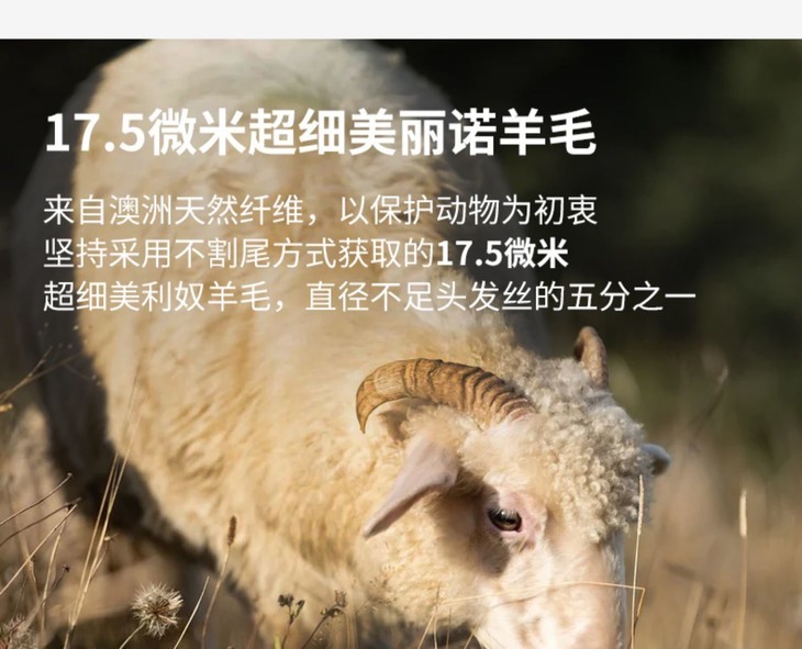 首先来说说它的材质吧,这款速干衣采用了17.5微米180克重的100%美利奴羊毛,由上市公司新澳股份采购。这是什么概念呢?简单来说,美利奴羊毛被誉为“羊毛中的爱马仕”,细腻柔软、不扎皮肤,穿上它就像被云朵轻轻包裹一样舒适。再加上17.5微米的纤维细度,这种材质比普通羊毛更加贴合肌肤,亲肤性满分!