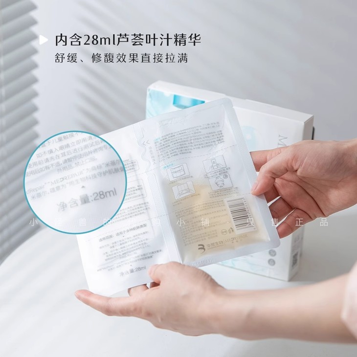 首先,咱们先来看它最特别的【分仓锁鲜设计】。传统面膜的精华液和面膜布是提前结合好的,而米蓓尔的小蓝帽面膜却将精华液和面膜布分开储存。使用时,只需沿虚线对折,把精华液挤入面膜布仓中,再撕开取出面膜使用。这种设计不仅能保证精华液的新鲜度,还减少了防腐剂的添加,让敏感肌也能安心使用。