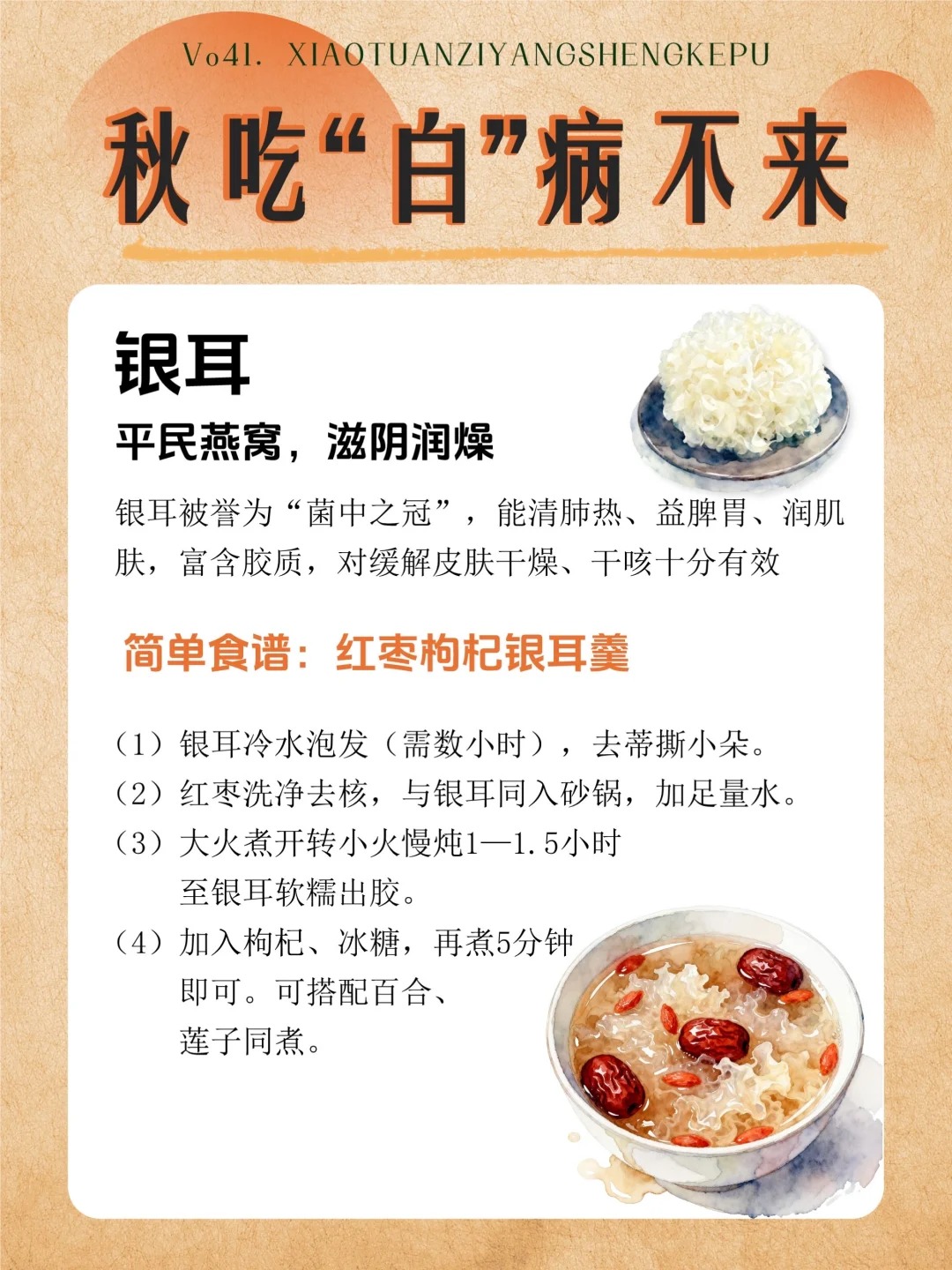 古人云“春食芽、夏食瓜、秋食籽、冬食根”,而秋日的白色食材,恰是自然馈赠的“润燥良方”。它们自带温润属性,像一层柔软的铠甲,悄悄抚平秋风带来的干燥与凉意,让味蕾在清浅滋味里,与这个季节温柔相拥。