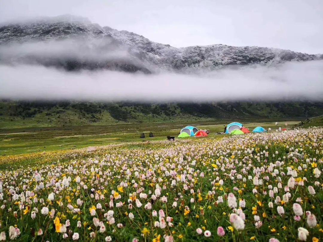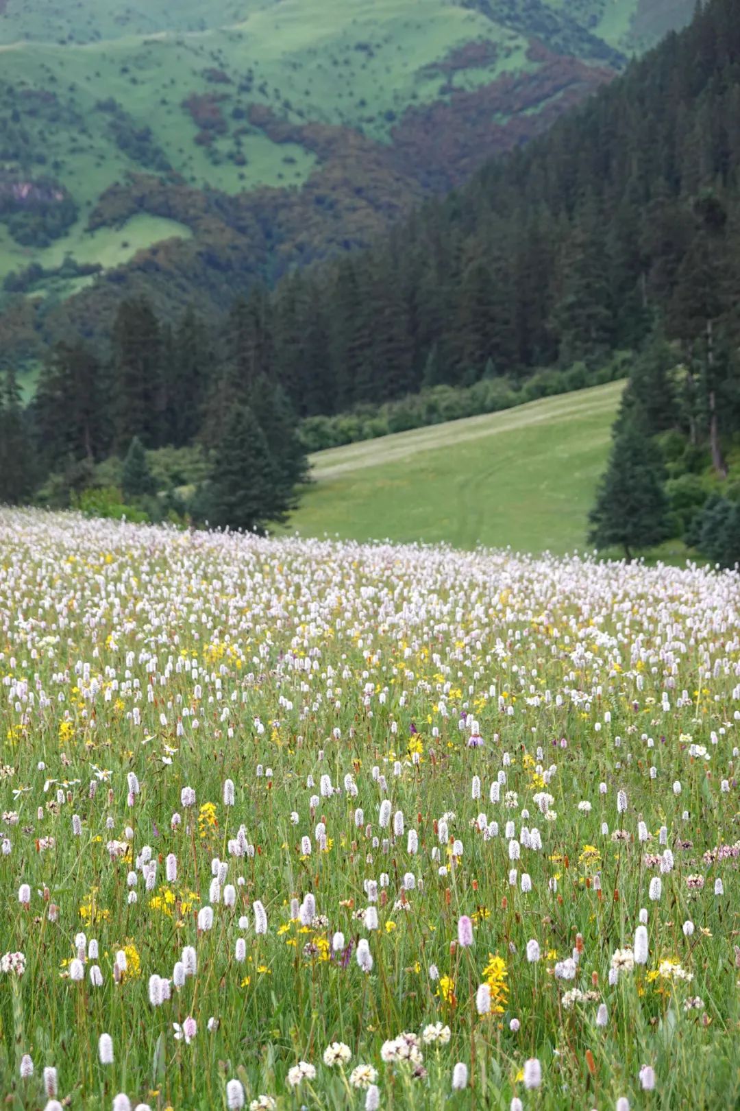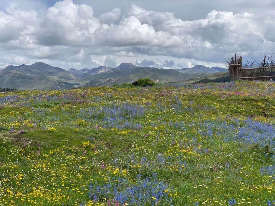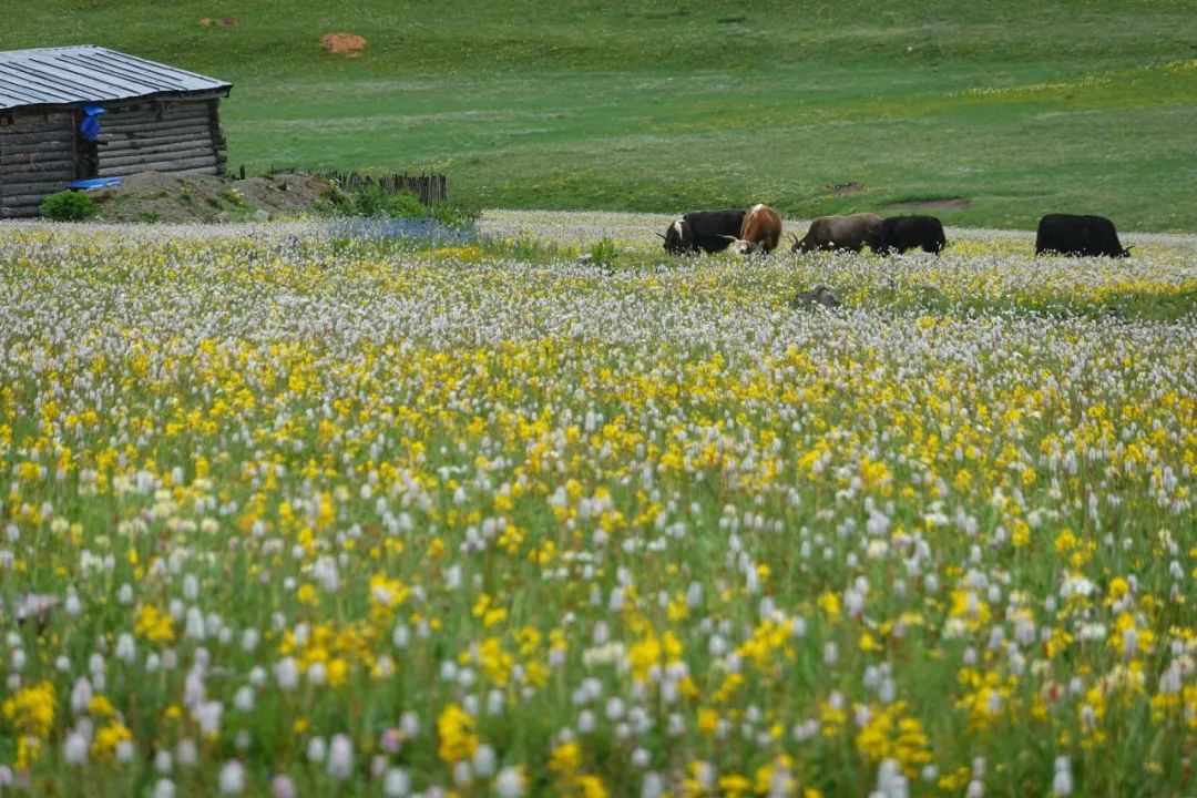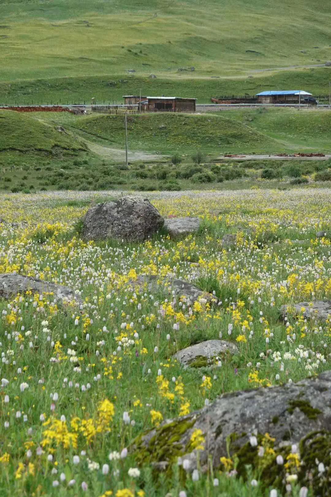 起伏的高原草甸裹挟着各色小花蓦然出现,