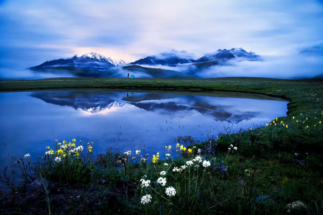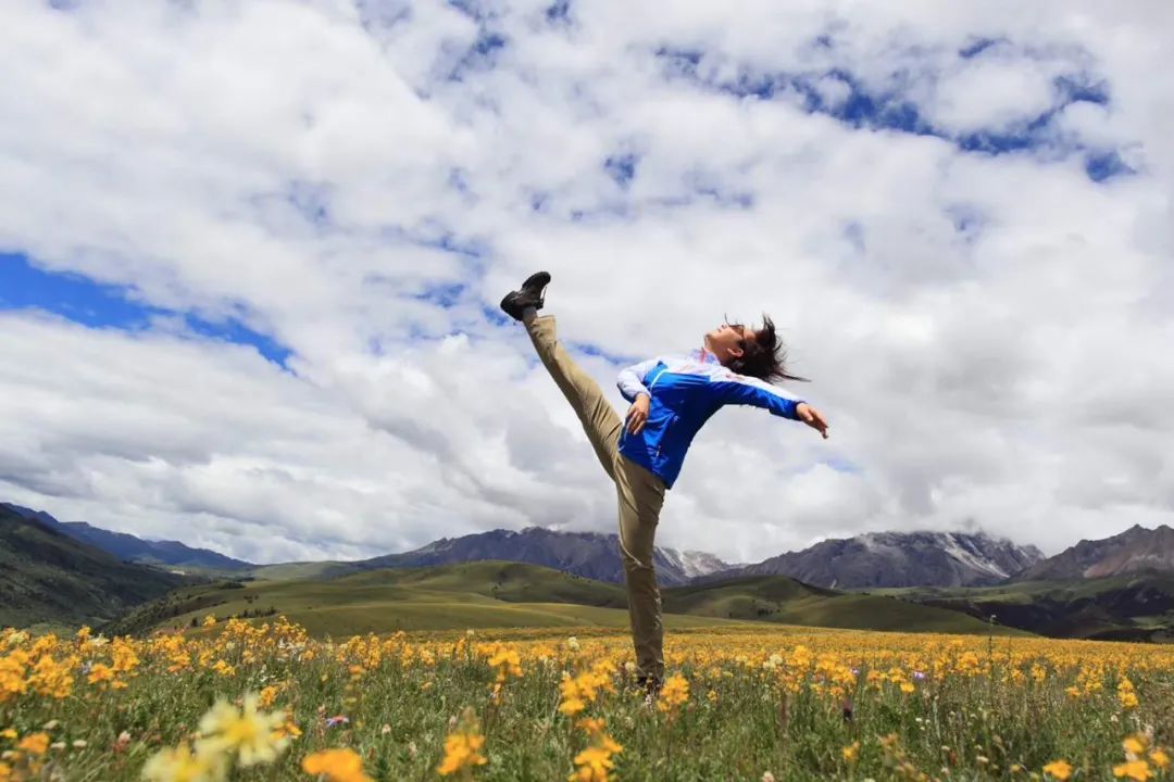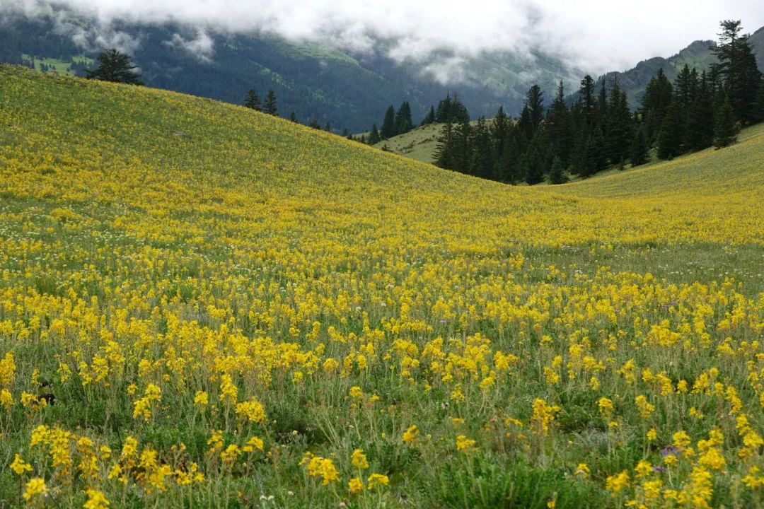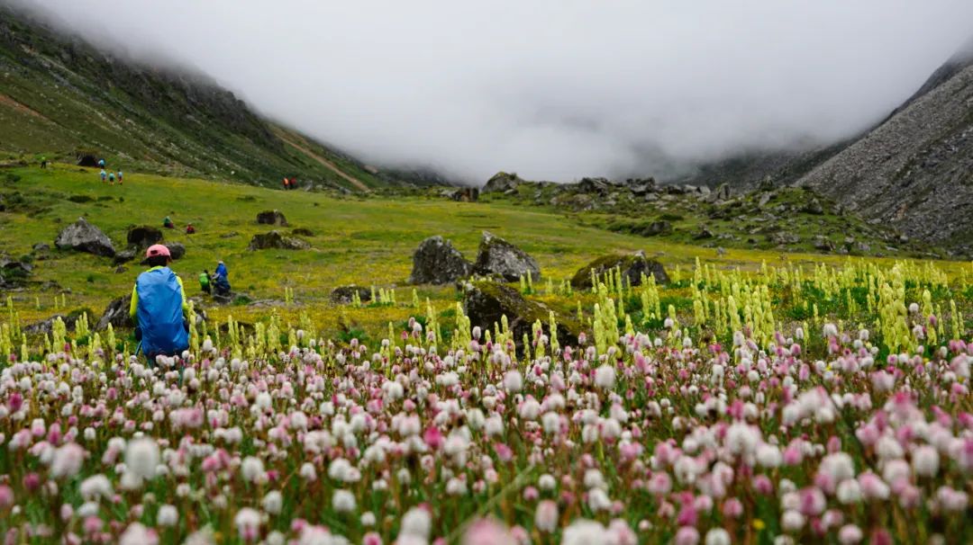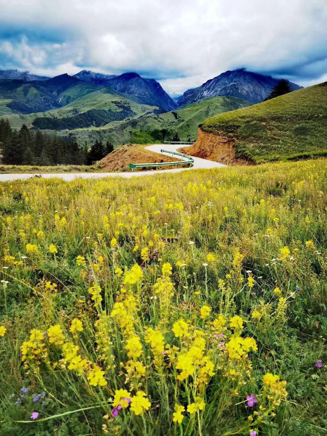 起伏的高原草甸裹挟着各色小花蓦然出现,
