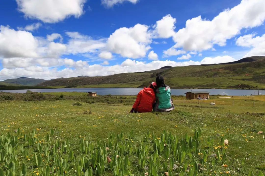 好在第二天行程颇为轻松,早上9点多从理塘乘越野小车,一路边走边玩,2点多便到达了徒步起点虎皮坝营地。