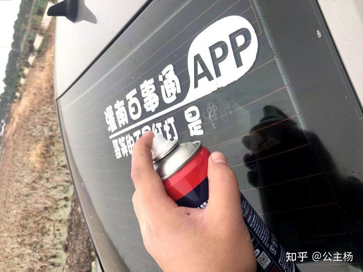 后来我才知道有个不干胶去除剂这个东西,我想效果应该没有那么神奇吧?刚好我车子后挡风玻璃上面的一个车贴早就想搞掉了,于是就在网上买了一瓶不干胶去除剂,买这种喷剂一定要选择大品牌,质量和品质都有保障!配方也会严格按照国家监管要求调配比例!