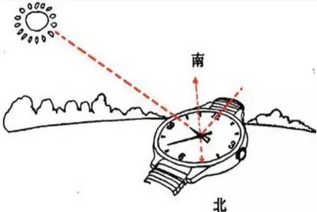 手表测向“时数折半对太阳,12指的是北方”,一般在上午9时至下午4时之间可以很快地辨别出方向,用时间的一半所指的方向对向太阳,12时刻度就是北方。