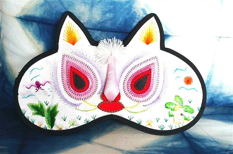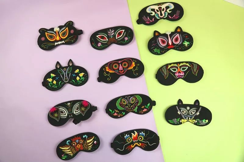 澄城刺绣传承人武麦花老师作品,民族风刺绣眼罩,嵌以十二生肖传统图腾。眼罩正面针工细腻,花形简洁大方,颜色搭配和谐,并富有深刻的文化内涵。