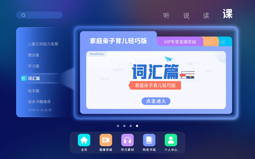 (1)按照“听”“说”“读”“课”的全新梳理方式,将“昫爸家庭阅读能力培养方案”更好地呈现给睿得用户。