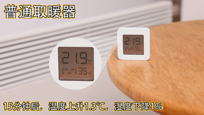 普通取暖器开了15分钟,温度才上升1.3℃,湿度就往下掉了1%,