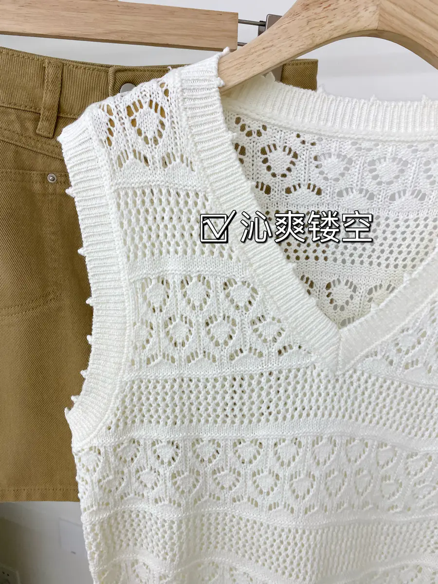 今年针织风真的很火,田园感针织肌理+韩式马甲版型,让夏天的穿搭能眼前一亮,针织镂空的设计,即使在炎热的夏天也能有凉爽感~