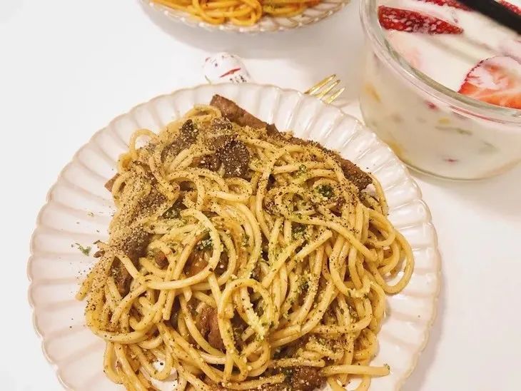 香煎菲力牛排切条,配以黑胡椒的芳香。面酱中有大块的牛肉,黑胡椒味醇厚提味,让口感更饱满。