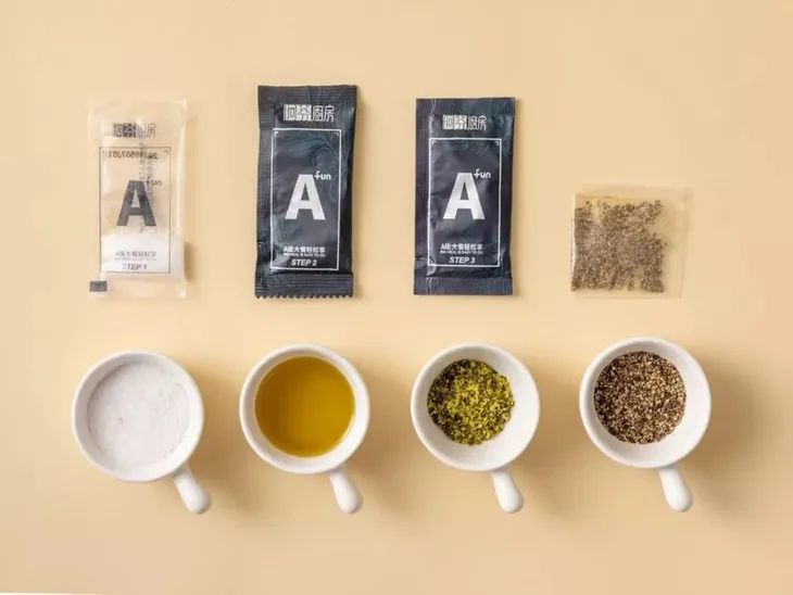 研发师是米其林二星主厨,按照餐厅的标准配备了齐全的料包 。配料的包装超贴心,每一小包都标注了使用步骤,放料的时候不会弄混,厨房小白也信手拈来。