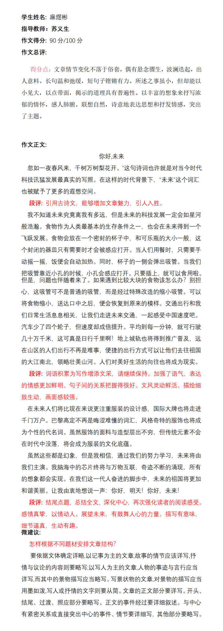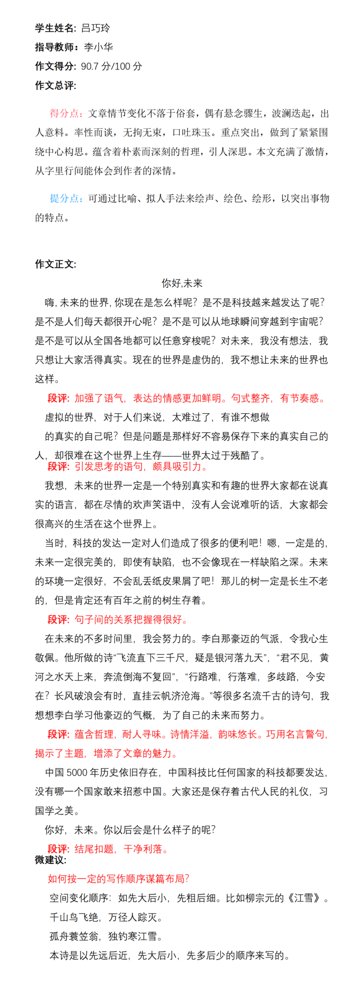 在写这篇文章的时候,我引导孩子大胆畅想,大胆去表达自己内心的想法。孩子学习认真踏实,善于思考,想象力的确很丰富,这与她平时用功积累是分不开的,习作很优秀!加油!