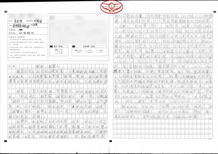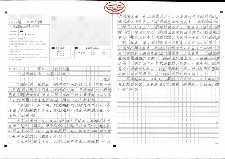 我是一个喜爱读书的孩子,在书中自由地遨游让我体会到了快乐,阅读中我也会体会书中人物的喜怒哀乐悲欢离合,更有优美词语与好多写作技巧。当我看到这次的题目,我特别来劲,因为我对未来科技有着很多渴望,对未来有着无数的幻想。