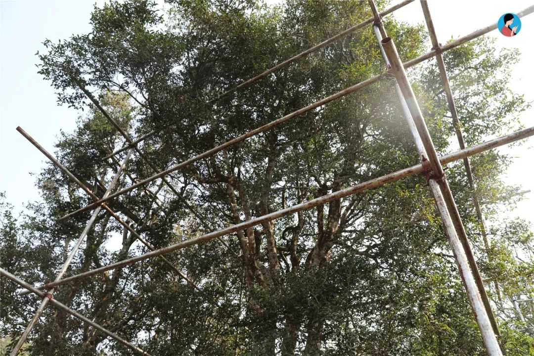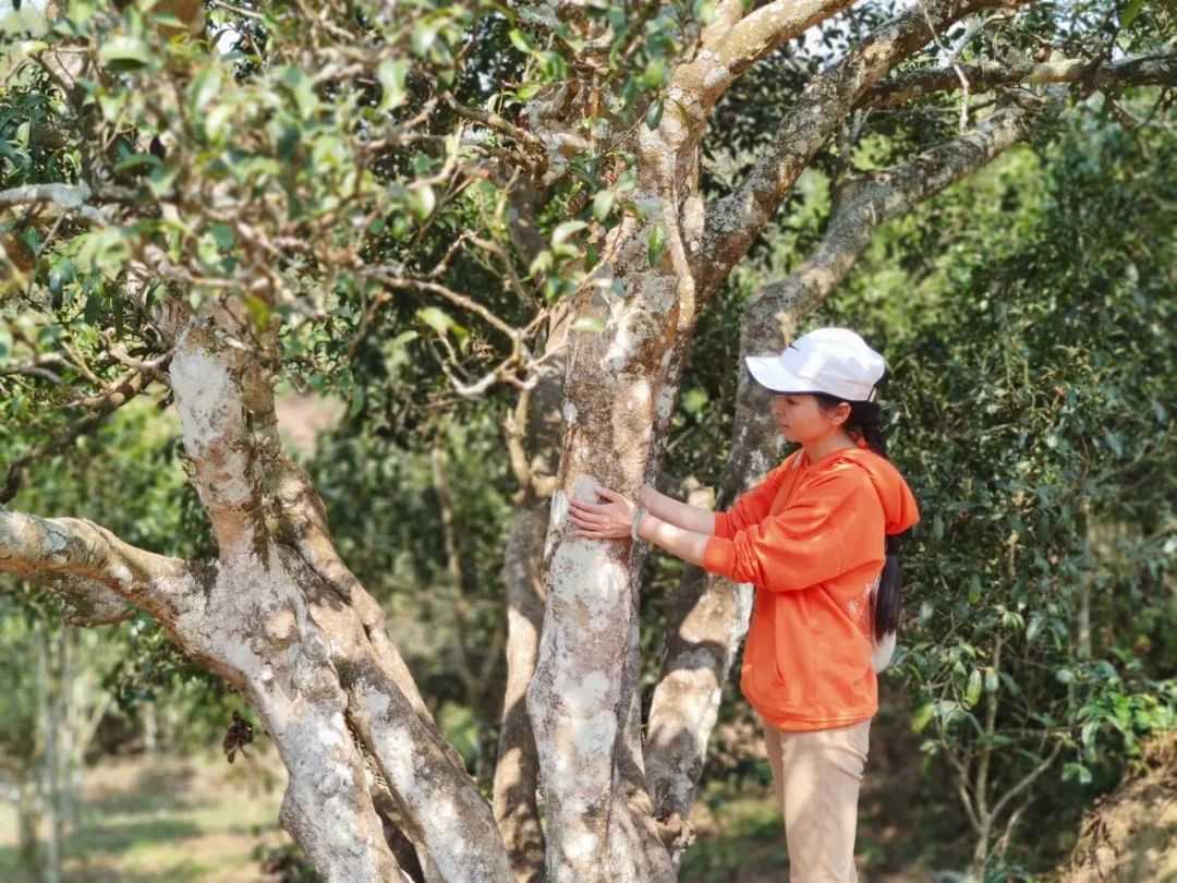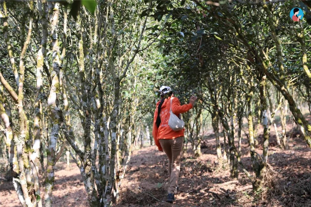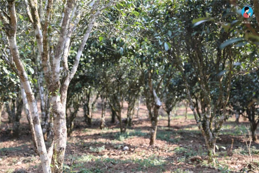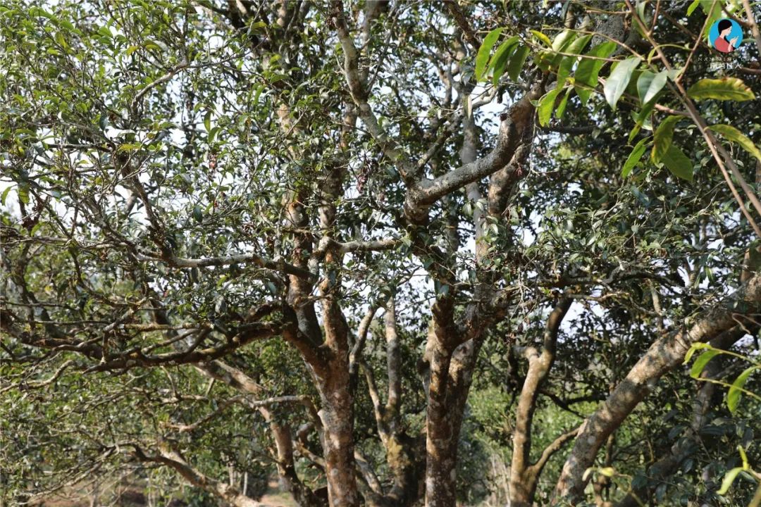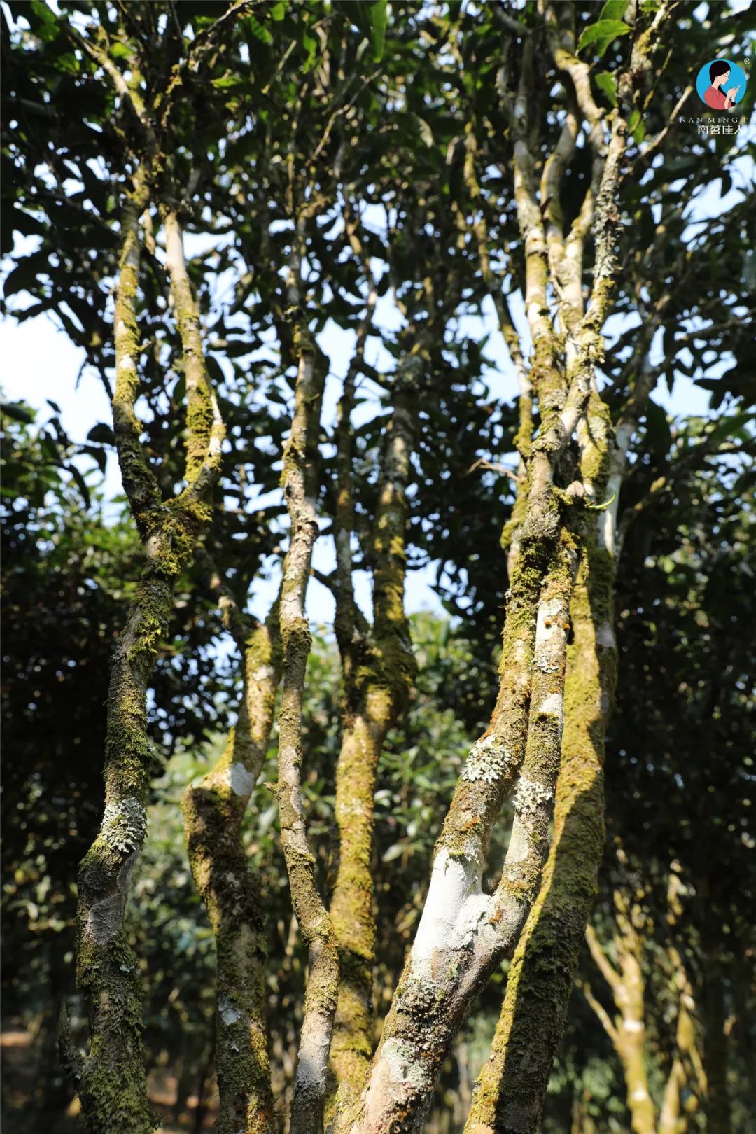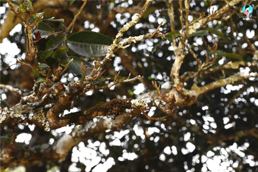 看向茶树虽然茶树上没有兰草、石斛等植物,但树干、树枝上仍有青绿色的苔藓附着其上,困鹿山古茶园中的茶树虽然缺水,但空气湿度好、小环境气候优良。