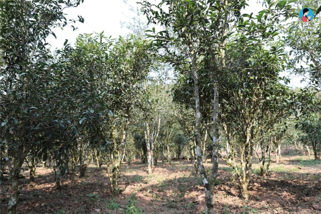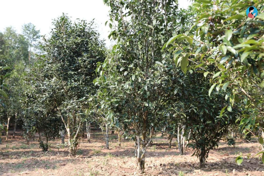 古茶园中大大小小的茶树混生在一起,大的古茶树树围约有100厘米以上,其树冠铺展开来约有4、5米宽,而较小的古茶树则直立生长于茶林中。