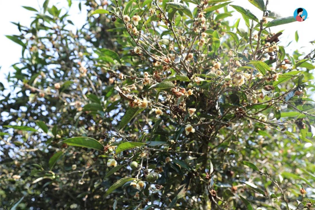 走在古茶园中除了随处可见的小叶种古茶树外,还分布着少量细叶种茶树和大叶种茶树,其中小叶种茶树虽未发芽,但已有明黄色茶花绽放在古树枝头上;