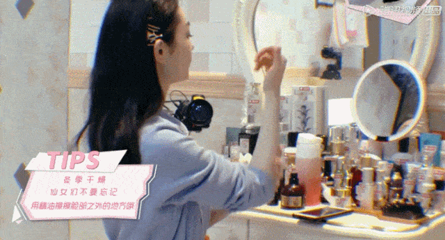有时候带妆时间太久引起皮肤不适,她就会做睡前保养,彻底放松。