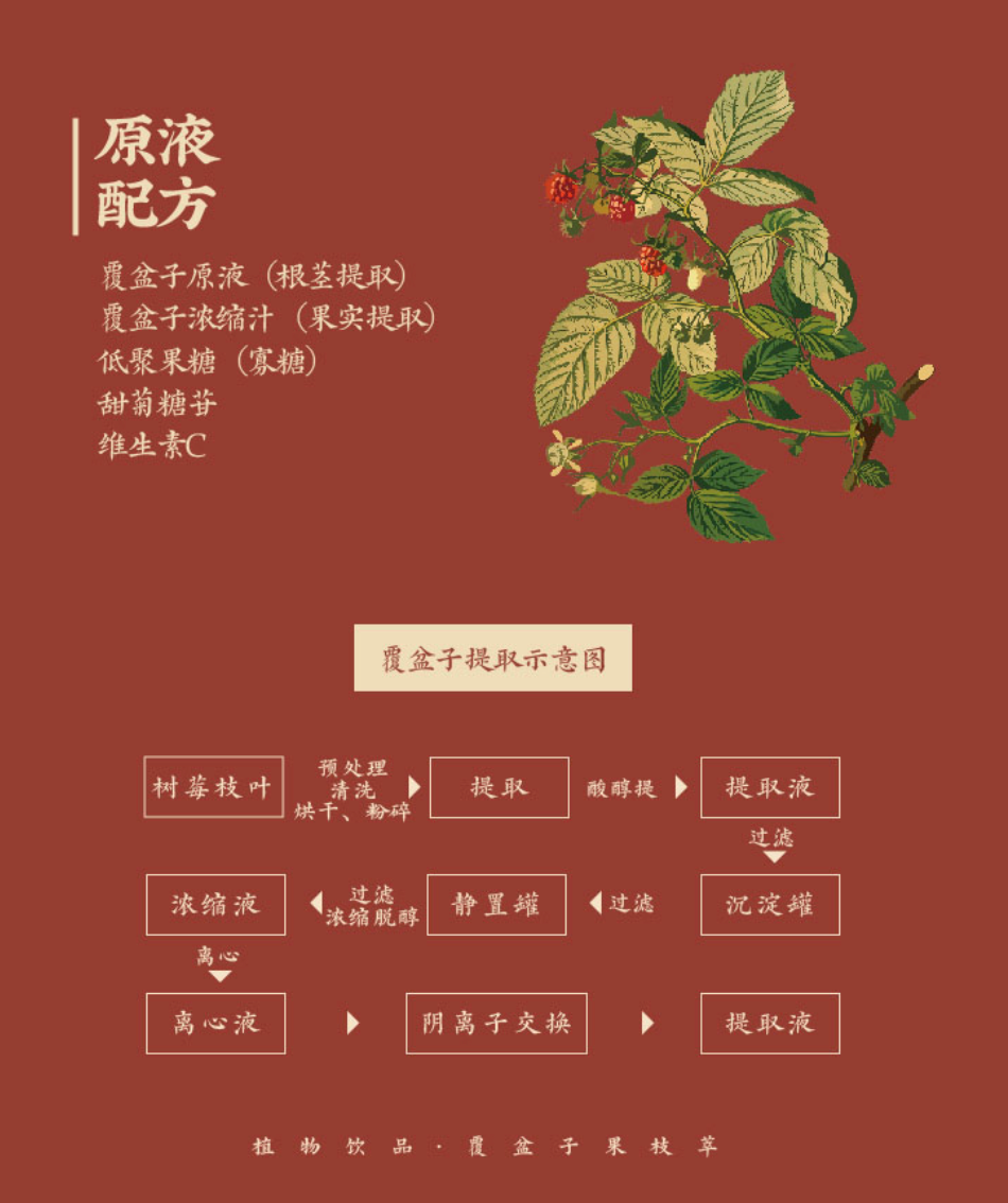 但新鲜的不好买不好保存,还特别贵,为此我同事和一个大学研究室合作,研发了覆盆子果汁。