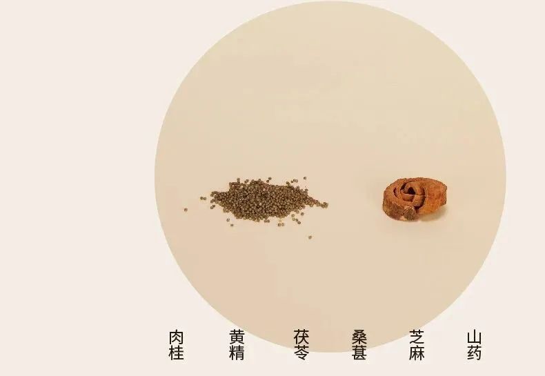 山药健脾益气、滋肾益精;茯苓健脾祛湿、养心安神,可使脾胃更好的生化气血;肉桂补元阳,暖脾胃,除积冷,通血脉,有引火归源之功。
