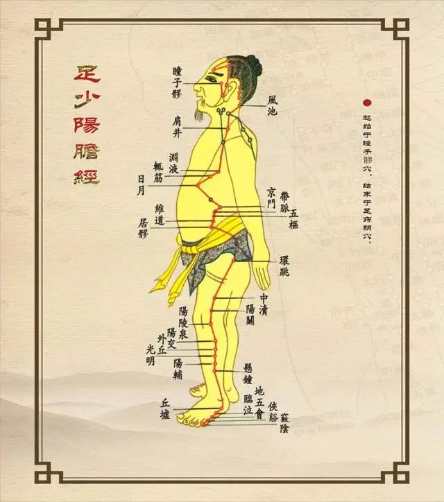 胆经不畅的表现:「头痛、耳鸣、眩晕、口苦」。