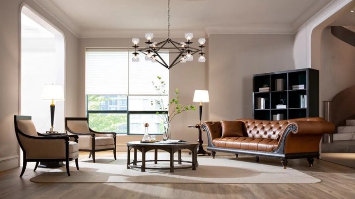 经典的拉扣沙发软如含蓄低调的优雅绅士,流畅精巧的涡卷曲线,延伸至沙发的扶手,形成视觉上凹凸回转的韵律美。高级时尚的丝绒面料,用清雅色彩描蜿蜒唯美的沙发气质,配简约自然材质的茶几,将现代复古的风韵优雅呈现。经典浅色皮质沙发,古典质朴的胡桃木色装饰还原怀旧气质,大气简练的曲线弧度,行云流水般融入其中。