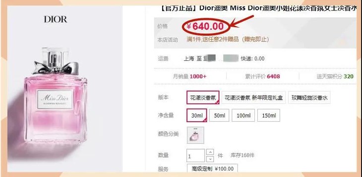 Miss Dior花漾甜心淡香氛官网30ml售价640元。