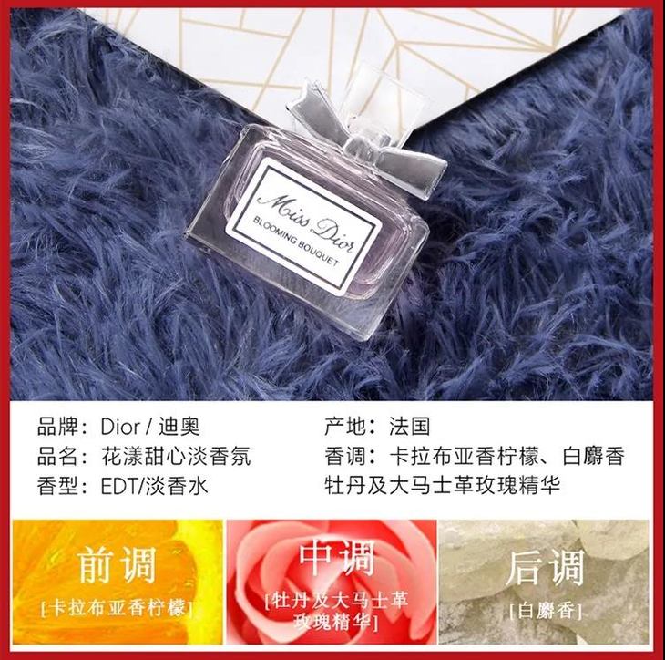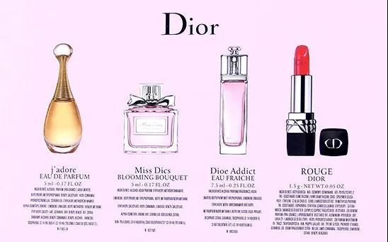 这个四件套里有:真我淡香5ml、迪奥小姐花漾淡香5ml、粉色魅惑7.5ml以及迪奥999/1.5g。