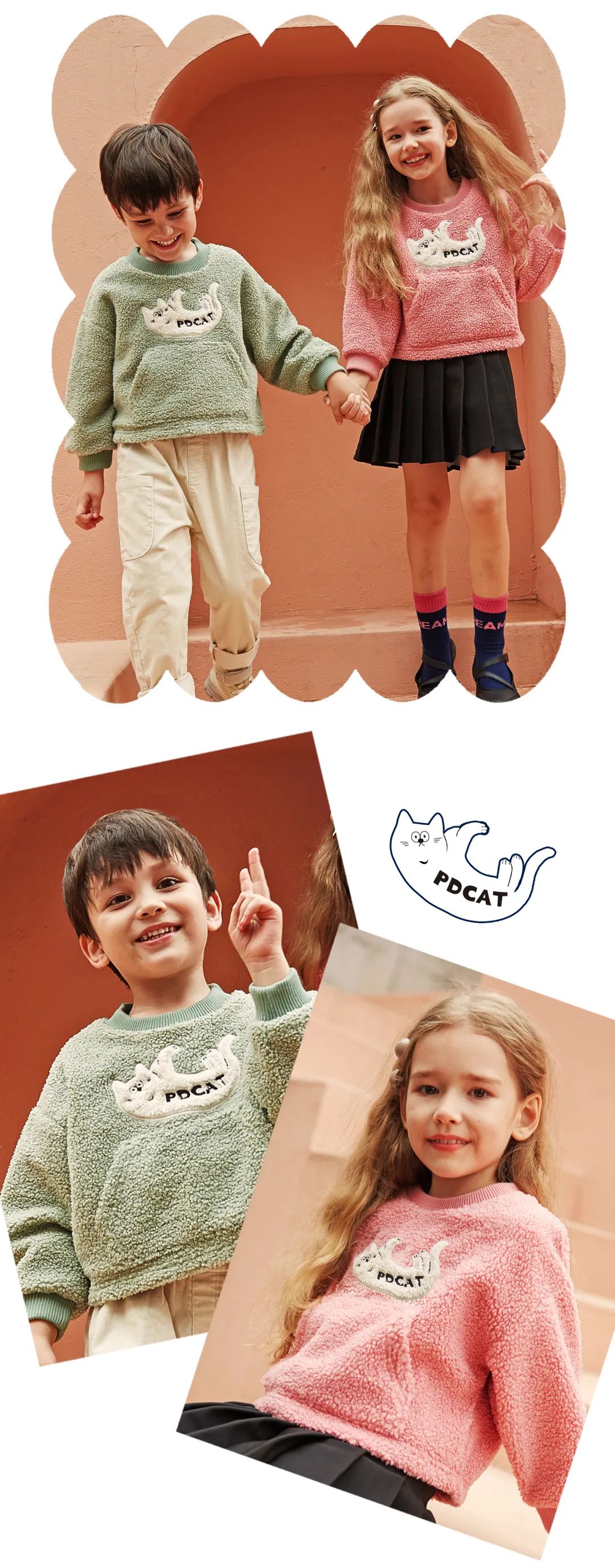 复古配色套头毛衣,泰迪绒面料搭配