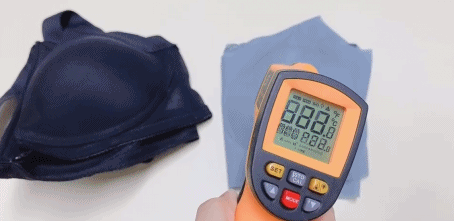 为了证明它的降温效果,测试了普通内衣和空气内衣的常规温度,可以明显看到