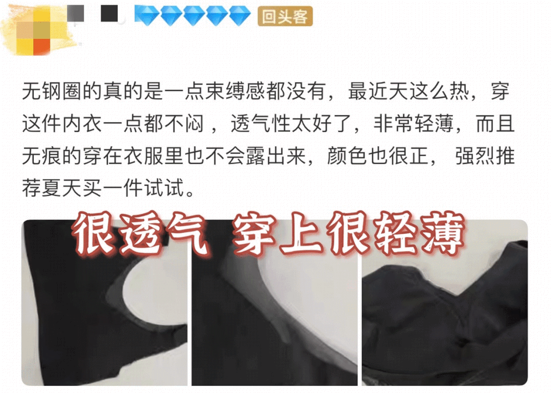 有了这款为夏天而生的内衣,胸部不闷不热,走路都有种微风拂胸的感觉,太舒服了~