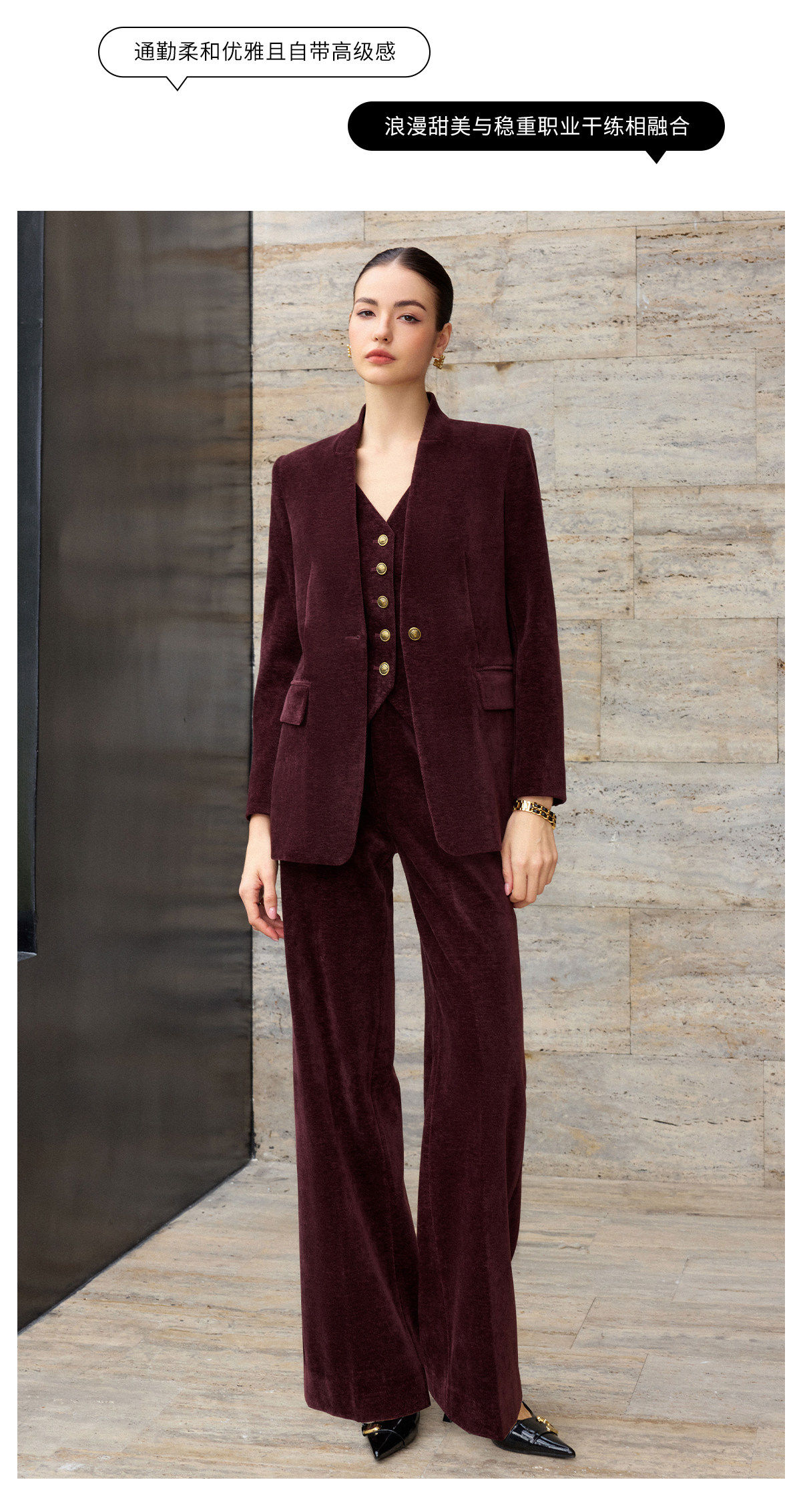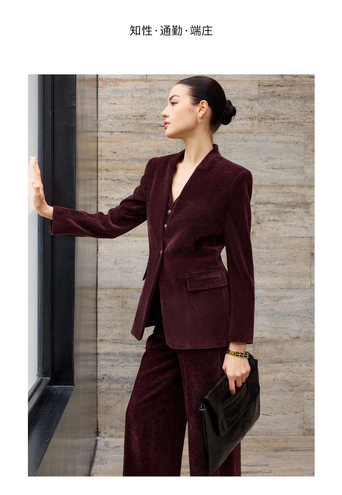 复古西装廓形勾勒出利落的线条,