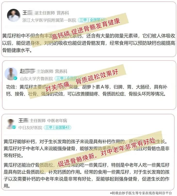 正因为黄瓜籽的强大补骨作用,获得了许多一线专家学者的一致认可与推荐↓↓