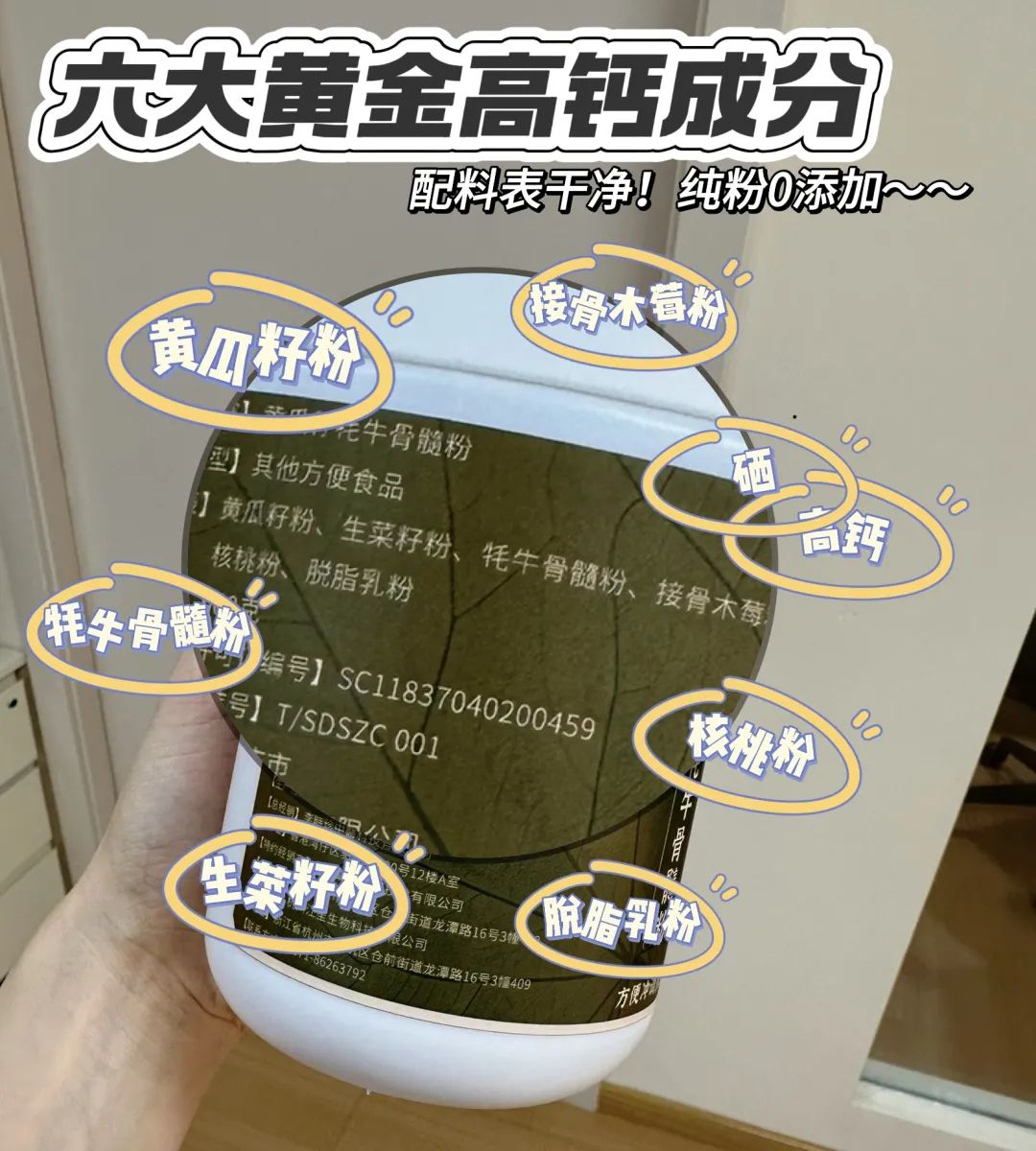 黄瓜籽牦牛骨髓粉不添加辅料,不额外加糖、糊精、甜味剂、防腐剂等,材料都以黄瓜籽、生菜籽、牦牛骨粉、接骨木莓、核桃粉、脱脂乳粉等高钙纯粉科学黄金配比制成。