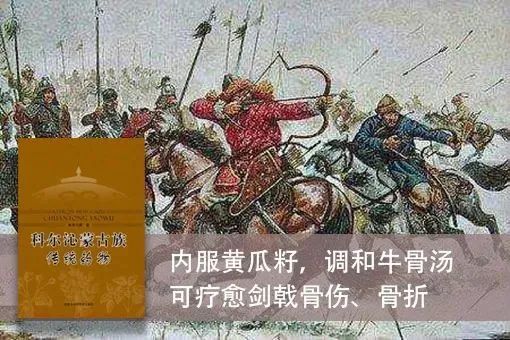 在蒙古族验方中,针对士兵在战争中形成的跌打损伤、骨折,随军大夫经常以内服黄瓜籽、羊(牛)骨汤,外敷草药以达到治疗目的。