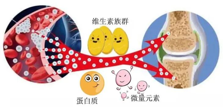 蛋白质加磷铁等微量元素,有助于钙质沉积吸收、结构化,强壮骨骼和关节。