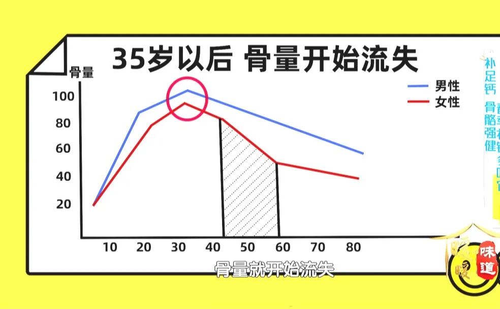 大概在35岁左右,这笔健康存款开始走下坡路,到了五六十岁,骨量流失速度更是"断崖式",尤其是女性!