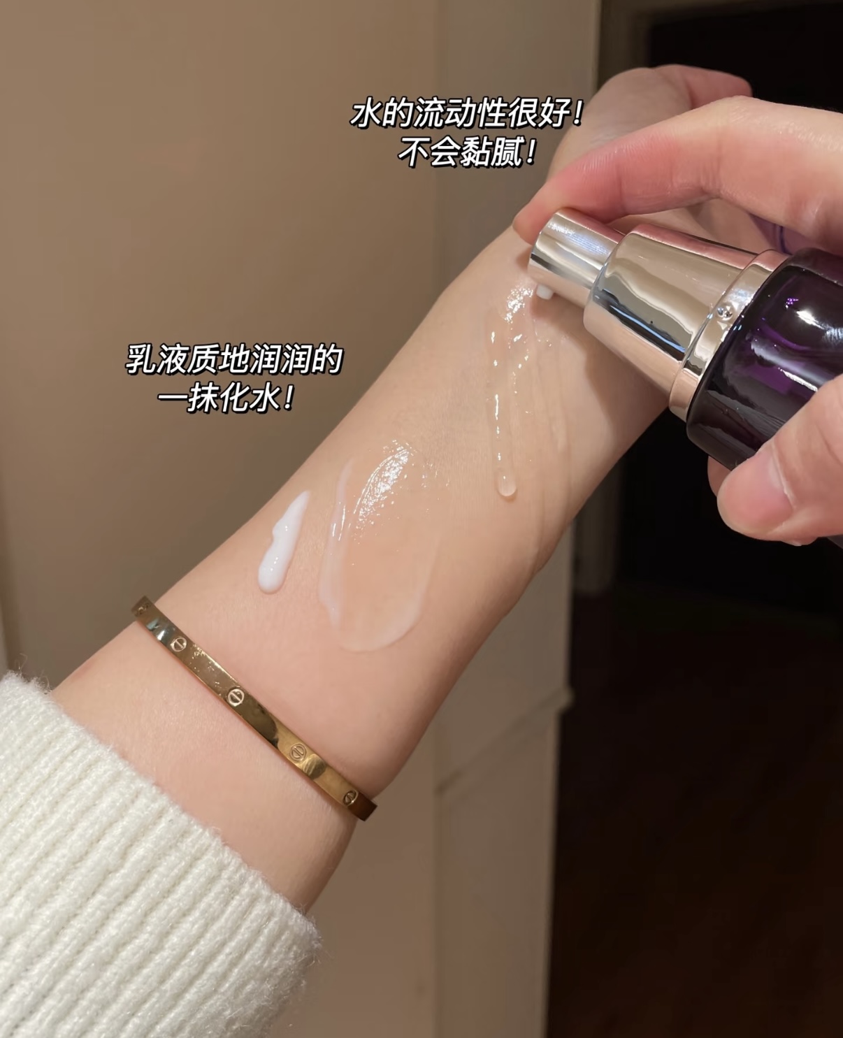 水乳都是按压泵头,使用起来敲方便哒~