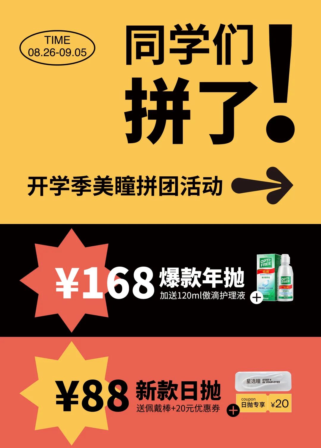 眼珠珠必须是开学日用刚需!新学期的换脸计划全新面貌少不了它。开学季美瞳拼团活动,给同学们准备了最炸的款式!最划算的价格!