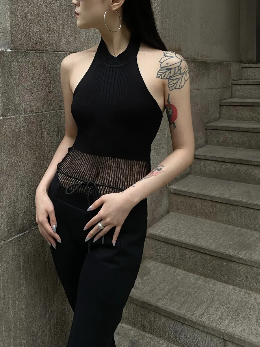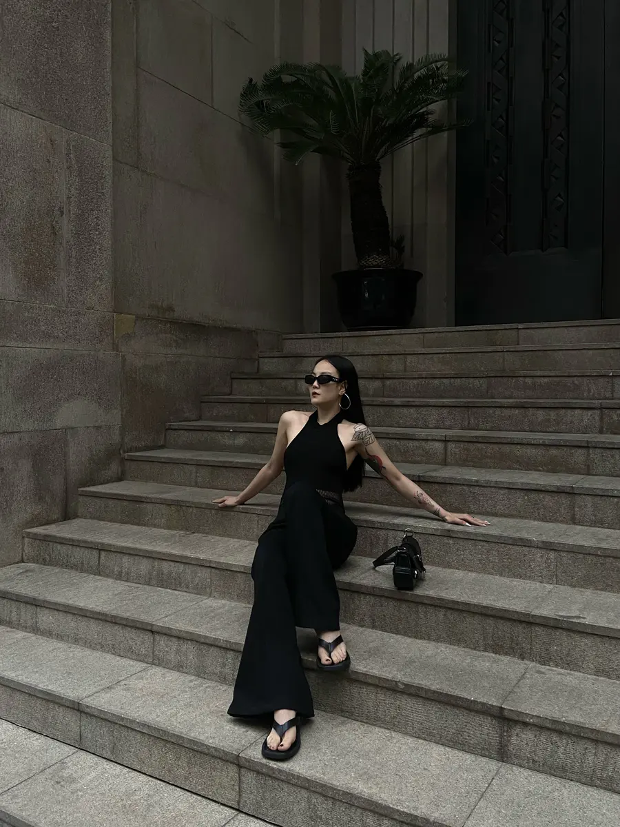 新品上身|挂脖背心+喇叭裤 同色系搭配古典气质满满🖤