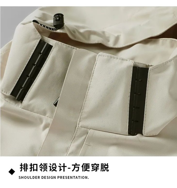 首先看看颈部防风排领扣,专门进行了加高设计,刚好能兜住颈部的位置,避免冷风顺着脖子往里灌。