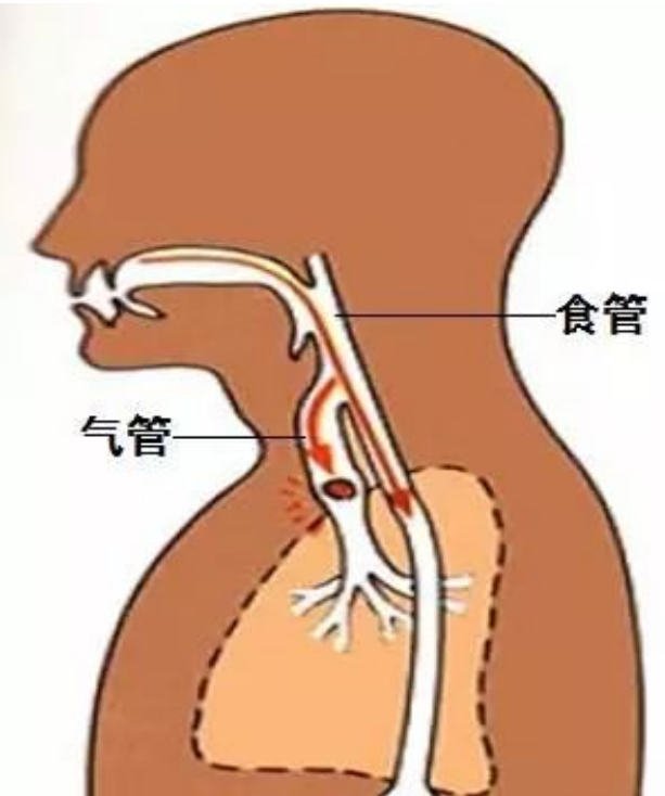 如下图所示,孩子有时会将本该进入食管的食物(爆米花等),误吸到气管内;或者将其他异物(例如小玻璃珠)吸入气管内。时间久了,会导致窒息,危及生命。