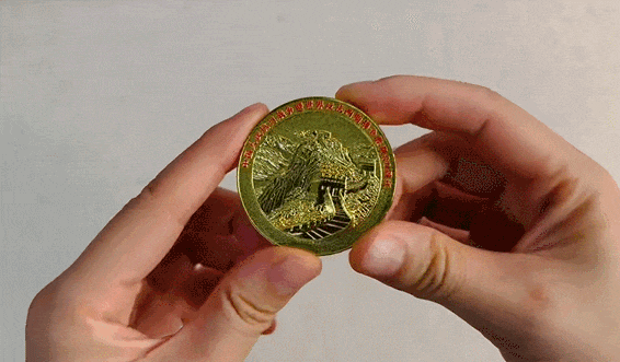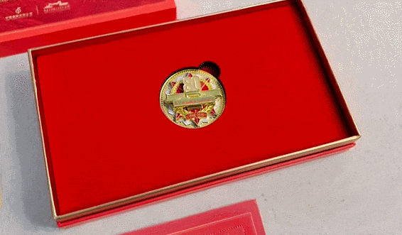 含有多功能互动纪念章一枚:采用锌合金材质,金光闪闪,细节处尽显庄重质感;