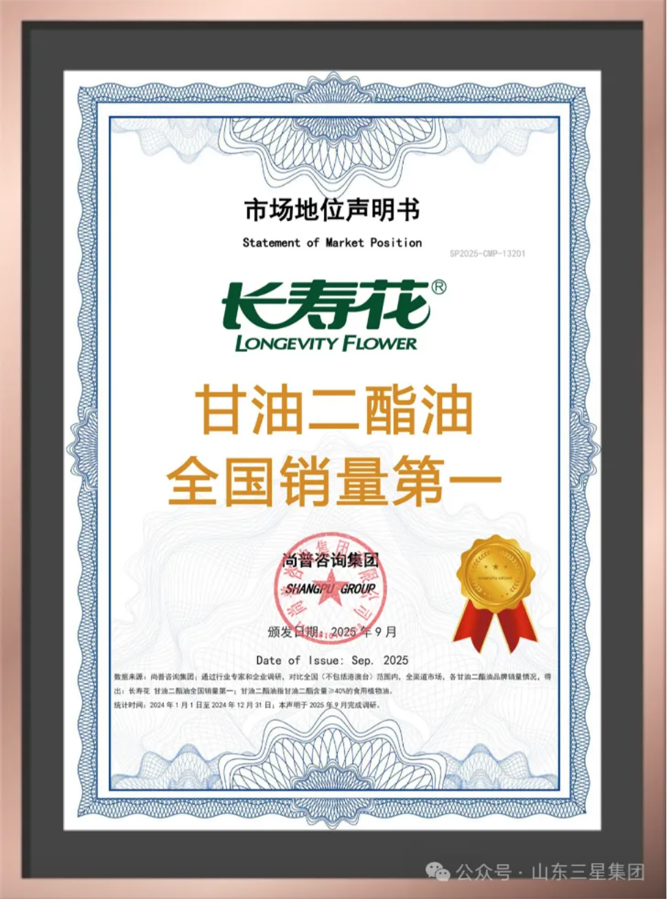 近日,尚普咨询集团向长寿花颁发“甘油二酯油全国销量第一”市场地位声明(统计范围:全国全渠道,甘油二酯含量≥40%食用植物油;统计时间:2024年全年;调研完成时间:2025年9月)。这不仅是长寿花的品牌胜仗,更折射出中国粮油产业从“吃得香”向“吃得健康”的功能化转型。