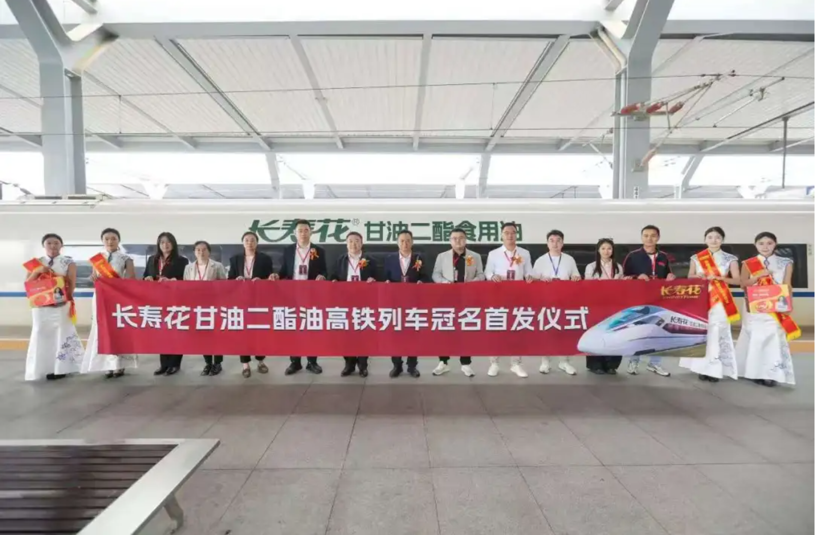 产品端,长寿花打造多元二酯油矩阵,覆盖玉米油、花生油等多油种,涵盖40%入门款至96%以上高阶款,适配不同需求与烹饪场景,快速占领细分市场。渠道上,采用“高空+地面”立体化策略:高空冠名甘油二酯油高铁列车,全方位霸屏传播;地面深入社区,通过科普讲座等形式,拉近与消费者的距离。