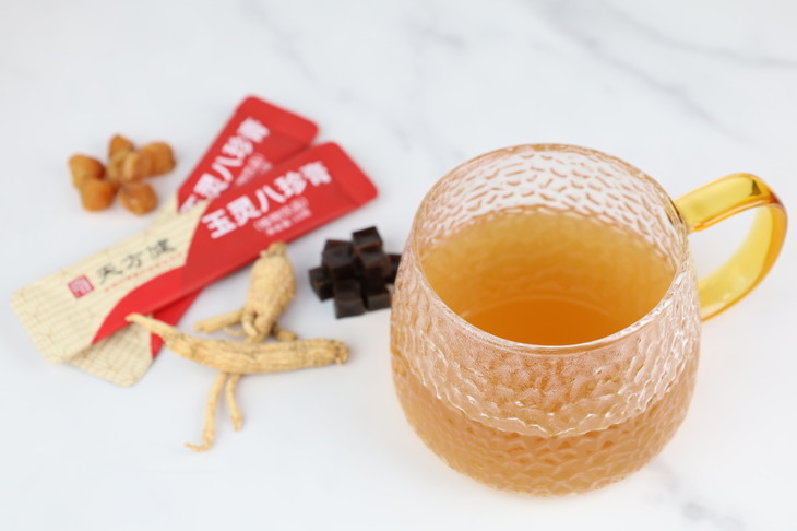 还可用温开水冲服,将一条「玉灵八珍膏」挤入容器中,加入100-200ml温水冲饮,调匀后服下即可。