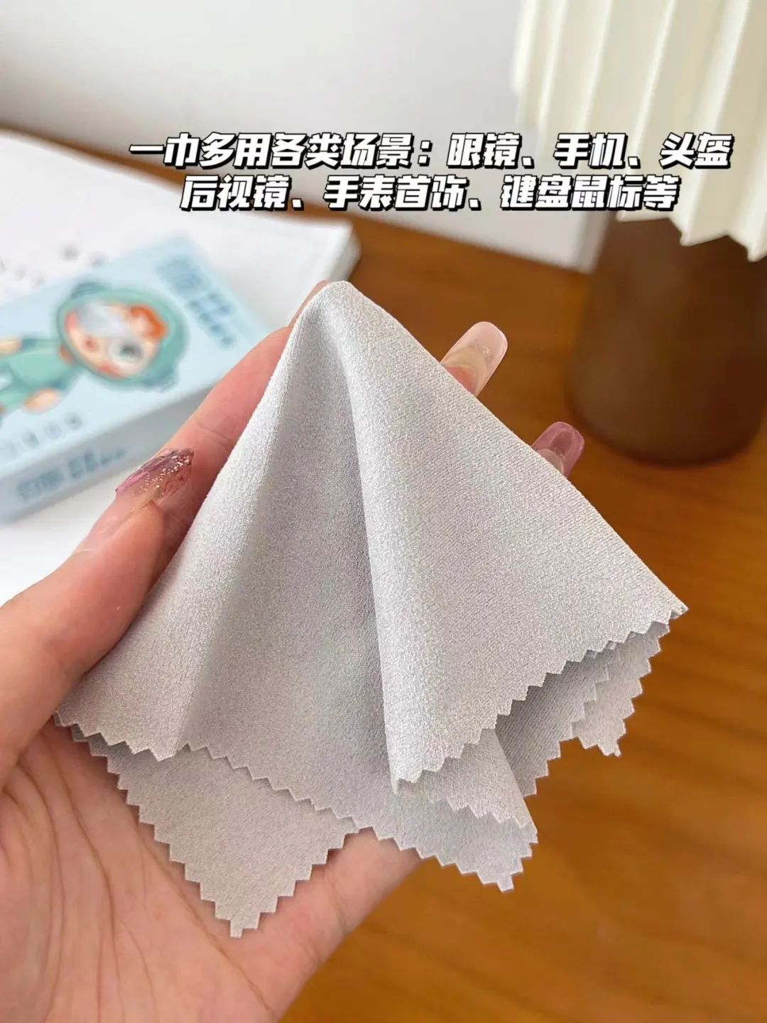 拿在手里触感也和普通眼镜布无异,而且撕不烂扯不破,够结实,长期擦拭也不会对眼镜片造成划伤!
