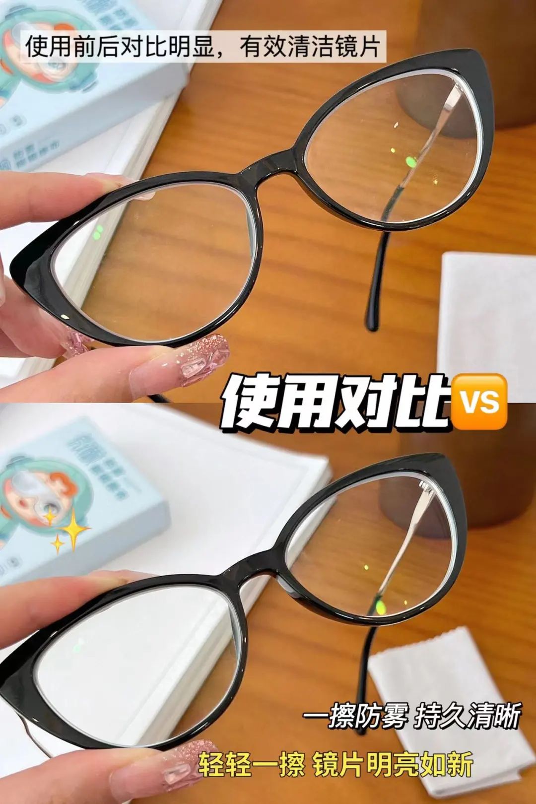 擦完,眼镜片不仅不起雾了,而且更干净了,更清晰了。