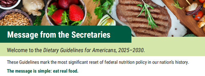 近日,美国发布了 《2025-2030年居民膳食指南》,它传递的核心重点是要让天然食物重新成为饮食的核心:天然的食物能滋养身体、恢复健康、提供能量,促进运动和锻炼、增强体力。