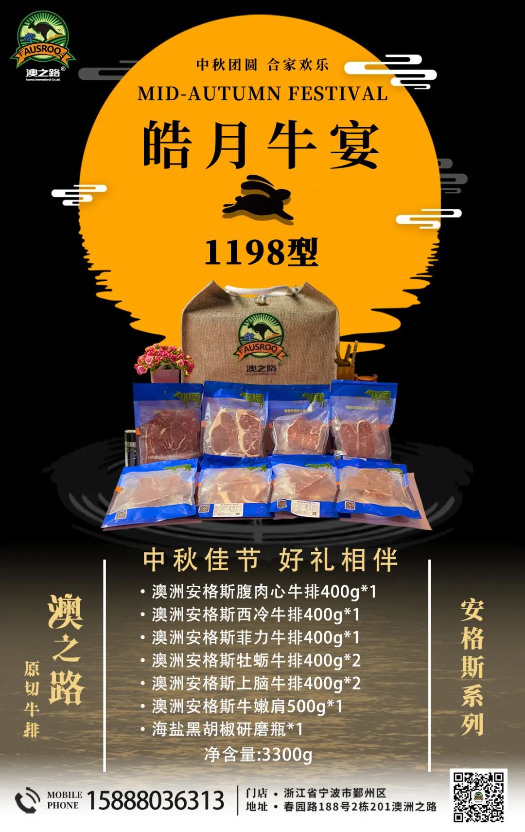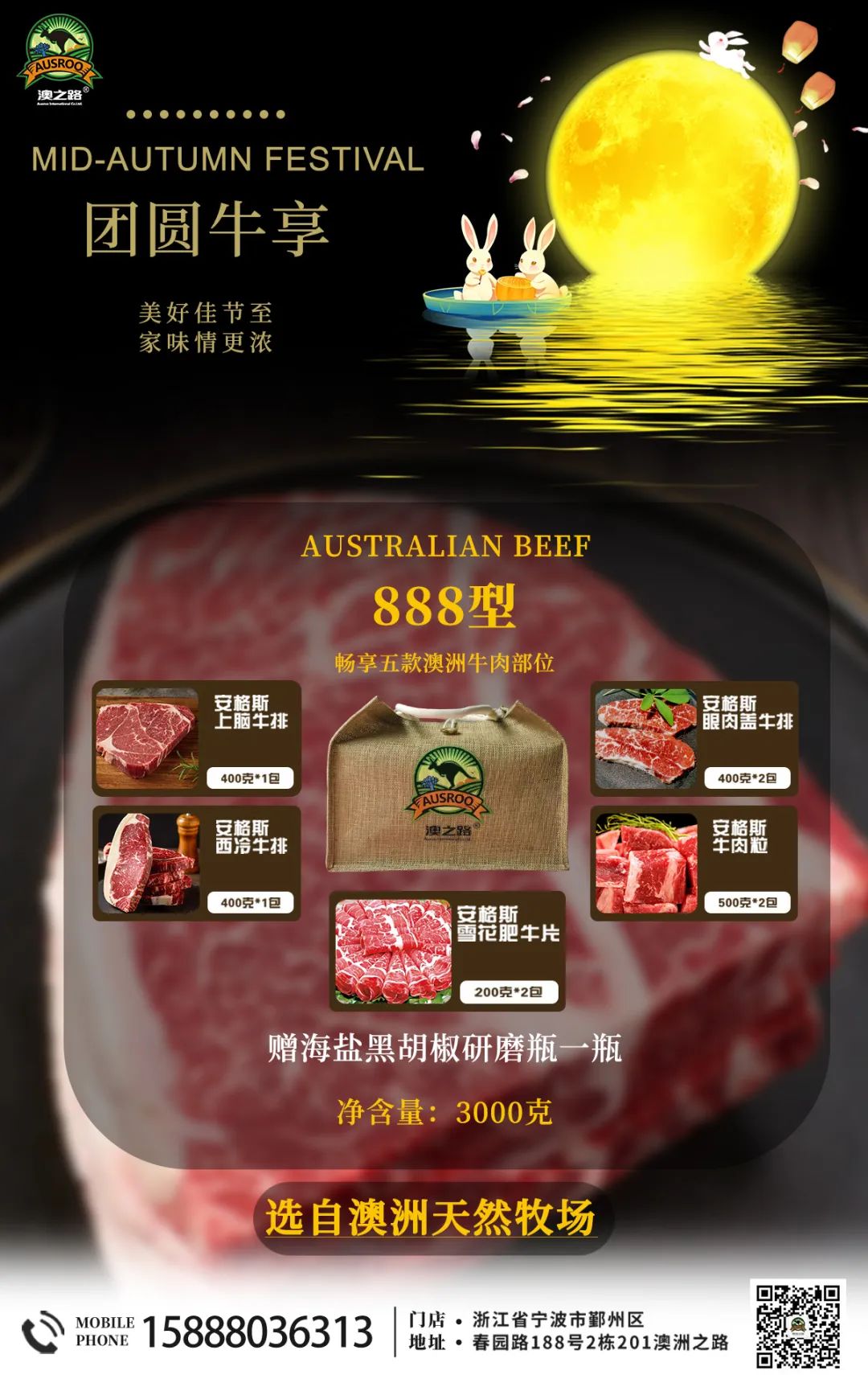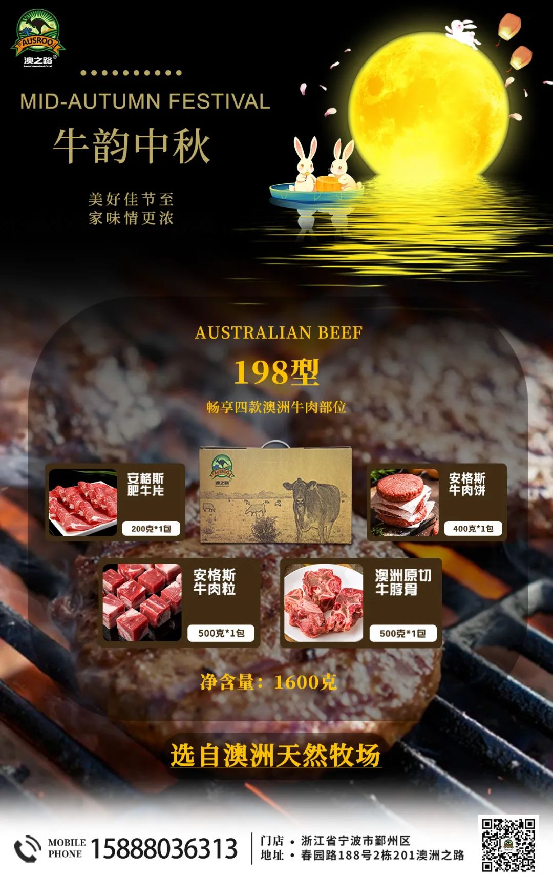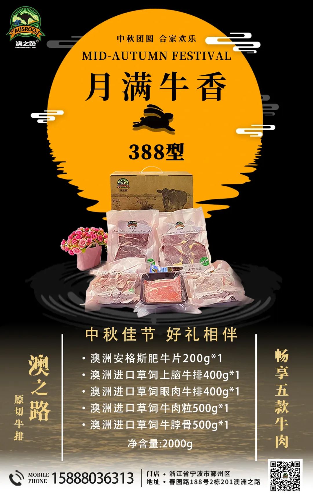 “月满牛香”礼盒,精选澳洲进口草饲牛肉与安格斯牛肉系列,汇聚肥牛片、上脑牛排、眼肉牛排、牛肉粒及牛脖骨五大美味,每一款都是对品质的坚持与对中秋团圆的深情献礼,让您的中秋餐桌月满人团圆,牛香四溢,共享美食与亲情的温馨时刻。