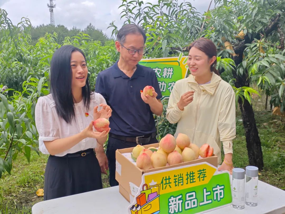 五里桃园内,新上市的 “里红桃” 挂满枝头,果香四溢。黄山供销优选敏锐捕捉市场需求,再度聚焦五里桃园,全力帮助农户销售这一特色水蜜桃品种。与前3站活动相比,此次助农行动在销售模式上实现创新升级。除了依托自身线上平台开展直播团购销售,以线上流量吸引消费者外,公司还积极协调对接合肥农产品供应链公司到现场进行收购。