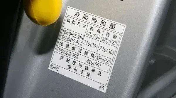 5、小轿车的胎压在车门柱附近或油箱盖板上,或看看你车副驾驶车门侧面。